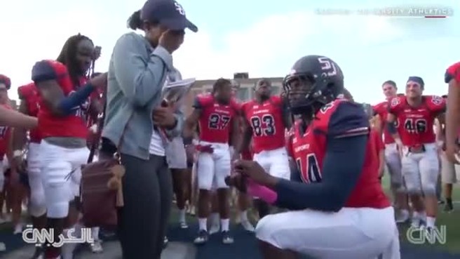 شاب أمريكي يطلب الزواج من صديقته بمساعدة فريق ( فيديو )