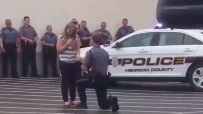 بالفيديو .. شرطي أمريكي يتقدم للزواج من حبيبته بطريقة مبتكرة