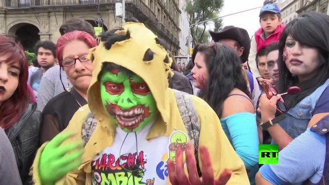 آلاف ” الزومبي ” يجتاحون العاصمة المكسيكية ! ( فيديو )