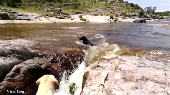 بالفيديو .. ” كلب ” شجاع ينقذ صديقه من الغرق في نهر