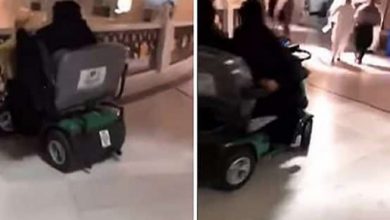 فتاتان تتمازحان بقيادة سيارة السعي الكهربائية داخل الحرم المكي ! ( فيديو )