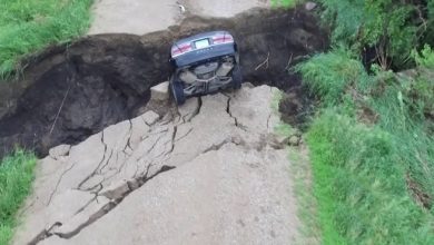 في أمريكا .. حفرة تبتلع سيارة مع شاب كان بداخلها ( فيديو )