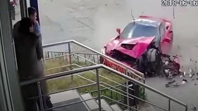 روسيا : تحطم سيارة رياضية و نجاة سائقها و شخصين آخرين ( فيديو )
