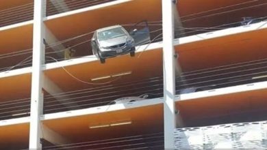 أمريكية تنجو بأعجوبة بعدما علقت سيارتها بين السماء و الأرض