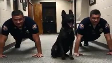 بالفيديو .. كلب يمارس تمارين الضغط بمهارة برفقة رجال الشرطة