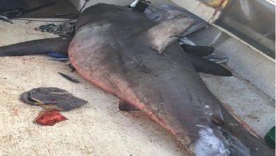بالفيديو .. ” سمكة قرش ” تقفز إلى سفينة صياد مسن و تطرحه أرضاً