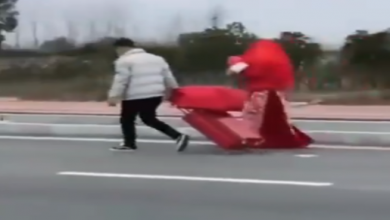 عريس يزف عروسه إلى منزله مشياً على الأقدام بسبب ” كورونا ” ! ( فيديو )