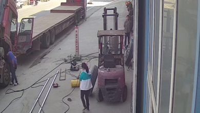 انفجار عجلة شاحنة يقذف رضيعة و والدتها في الهواء ( فيديو )