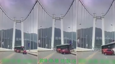لحظة سقوط حافلة من على جسر في الصين ( فيديو )