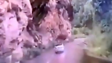 الصين : صخرة ضخمة تسقط على سيارة بطريقة غريبة ( فيديو )