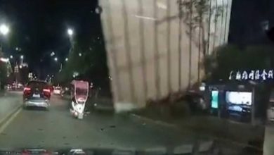 في الصين .. سقف معدني ” طائر ” يهوي على راكبي دراجة نارية ( فيديو )