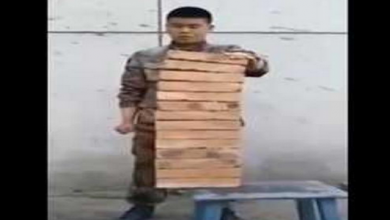 جندي صيني يستعرض قوته الخارقة للطبيعة ( فيديو )