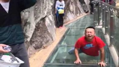 في الصين.. جسر زجاجي شاهق الارتفاع يتصدع أثناء عبور السياح عليه ( فيديو )