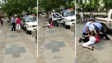 بالفيديو .. شرطي صيني يطرح سيدة و طفلتها أرضاً و يعتدي عليها بالضرب