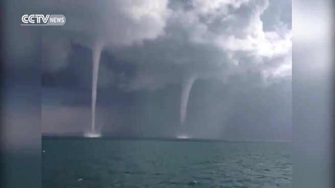 بالفيديو .. لحظة تشكل ثلاث زوابع مائية في بحيرة ساكنة بالصين