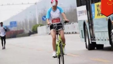 عداءة صينية تستخدم وسيلة نقل أثناء الماراثون ! ( فيديو )