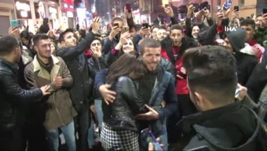 سوري يتقدم بطلب الزواج من صديقته خلال الدقائق الأولى من العام الجديد وسط أشهر شارع في تركيا ( فيديو )