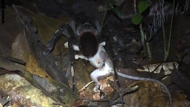 كاميرا ترصد عنكبوتاً عملاقاً يفترس حيواناً من القوارض في مشهد نادر ( فيديو )