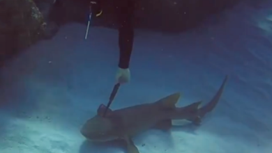 بالفيديو .. شاهد غواصاً ينقذ قرشاً من سكين غرست برأسه