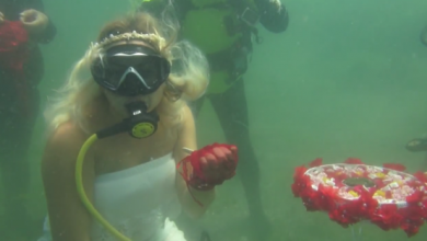 بالفيديو .. عروسان تركيان يحتفلان بليلة ” الحناء ” تحت مياه البحر