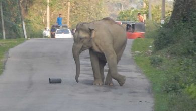 بالفيديو .. ” فيل ” يقطع شارعاً في الهند لممارسة كرة القدم
