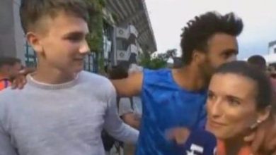 بالفيديو .. لاعب كرة مضرب يقبل المذيعة ” عنوة ” على الهواء