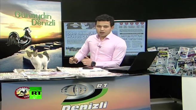 بالفيديو .. ” قطة ” تقتحم استوديو للأخبار أثناء بث مباشر