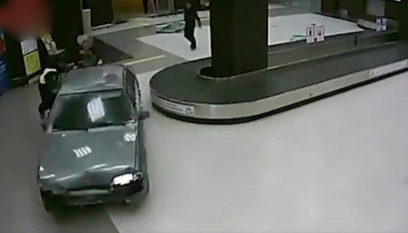 بالفيديو .. روسي مخمور يقتحم بسيارته أحد المطارات