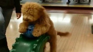 كلب يلعب الـ ” بولينغ ” بمهارة عالية ( فيديو )