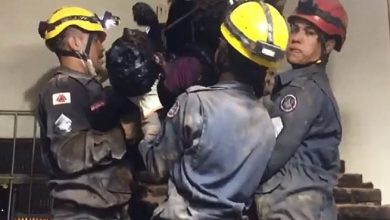 لحظة إنقاذ لص احتجز داخل مدخنة مطعم في البرازيل ( فيديو )