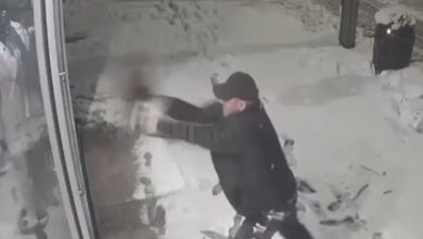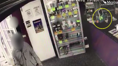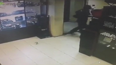 لص فاشل يهاجم شخصين و يحاول سرقة متجر مجوهرات ( فيديو )