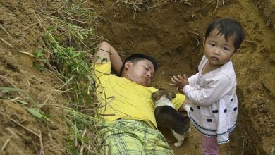 بالفيديو .. صيني يجهز طفلته المريضة للموت عبر اللعب معها في قبرها !
