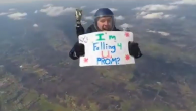 بالفيديو .. طالب أمريكي يدعو صديقته إلى حفل التخرج من فوق السحاب