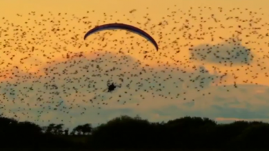 بالفيديو .. إسباني يحقق حلمه بالتحليق مع سرب ضخم من الطيور