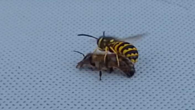 بالفيديو .. معركة شرسة بين نحلة و دبور