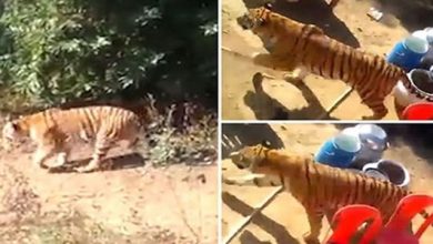 هجوم مفاجئ لنمر على أبقار وسط قرية هندية ( فيديو )