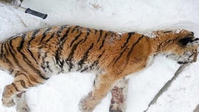 في روسيا .. أنثى نمر مصابة تلجأ إلى قرية لعلاج أنيابها ( فيديو )