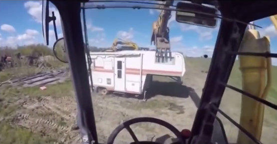 بالفيديو .. عامل بناء أمريكي يوقظ زميله باستخدام ” جرافة “