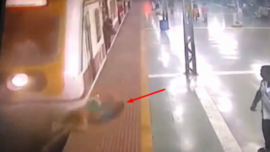 الهند : نجاة امرأة بأعجوبة بعدما صدمها قطار سريع ( فيديو )