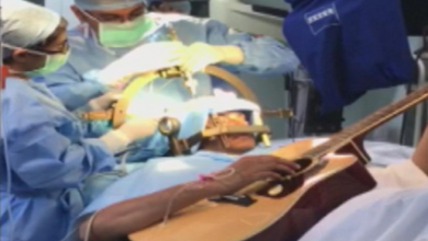 فيديو مذهل لموسيقي هندي يعزف على ” الغيتار ” و الجراحون يثقبون جمجمته !
