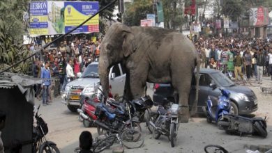 بالفيديو .. ” فيل ” غاضب يحطم سيارة في مهرجان بالهند