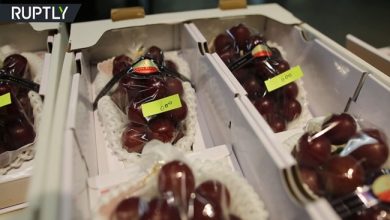 عرض عناقيد من نوع ” روبي رومان ” الشهيرة في مزاد العنب مرتفع الثمن وسط اليابان ( فيديو )