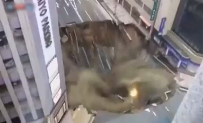 بالفيديو .. انشقاق شارع في اليابان و ظهور حفرة هائلة