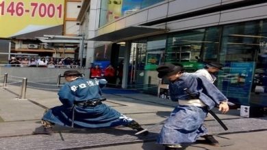 عمال نظافة بزي الـ ” ساموراي ” ينتشرون في اليابان ! ( فيديو )