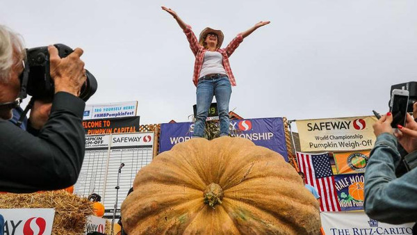 معلمة أميركية تزرع ثمرة يقطين عملاقة