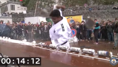 بالفيديو .. باكتساني يحقق رقماً قياسياً في سحق عبوات الشراب بمرفقه بدقيقة واحدة