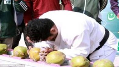 بالفيديو .. باكستاني يكسر 35 جوزة هند برأسه في دقيقة واحدة