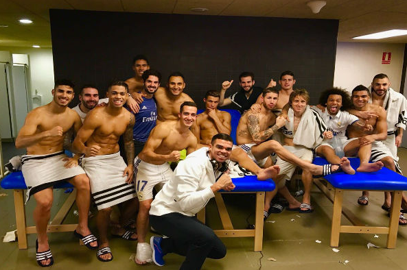 لقطة كريستيانو مع لاعبي مدريد تثير غضب جماهير برشلونة