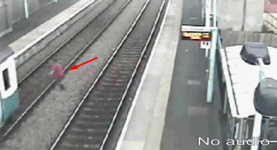 بالفيديو .. طالب بريطاني يقفز أمام قطار و يجبره على التوقف