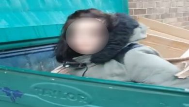 إنقاذ مشردة بريطانية نائمة بصندوق قمامة قبل تفريغها في شاحنة النفايات ( فيديو )
